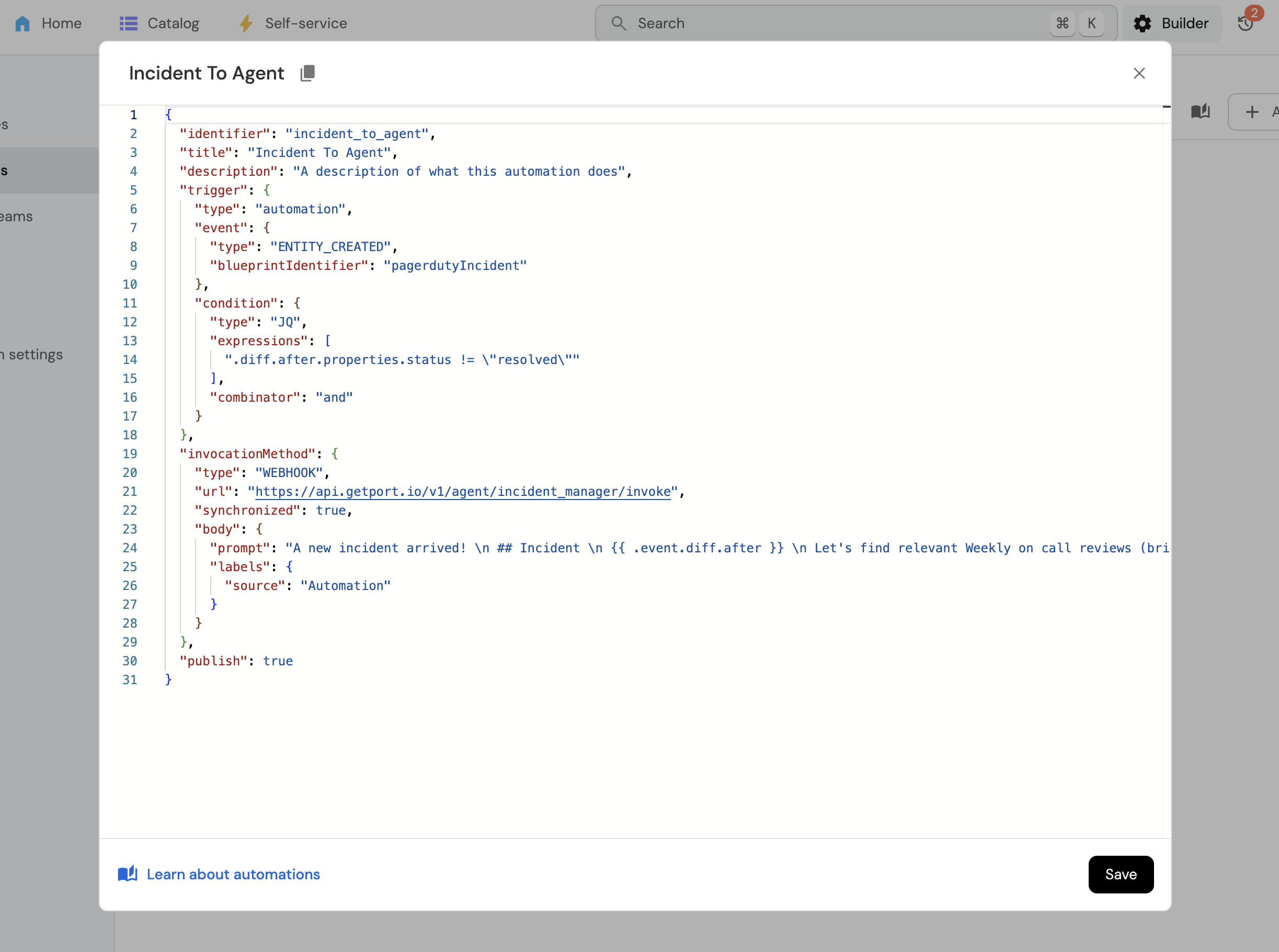 For example, when a new incident is created in Port, you can trigger an agent that: