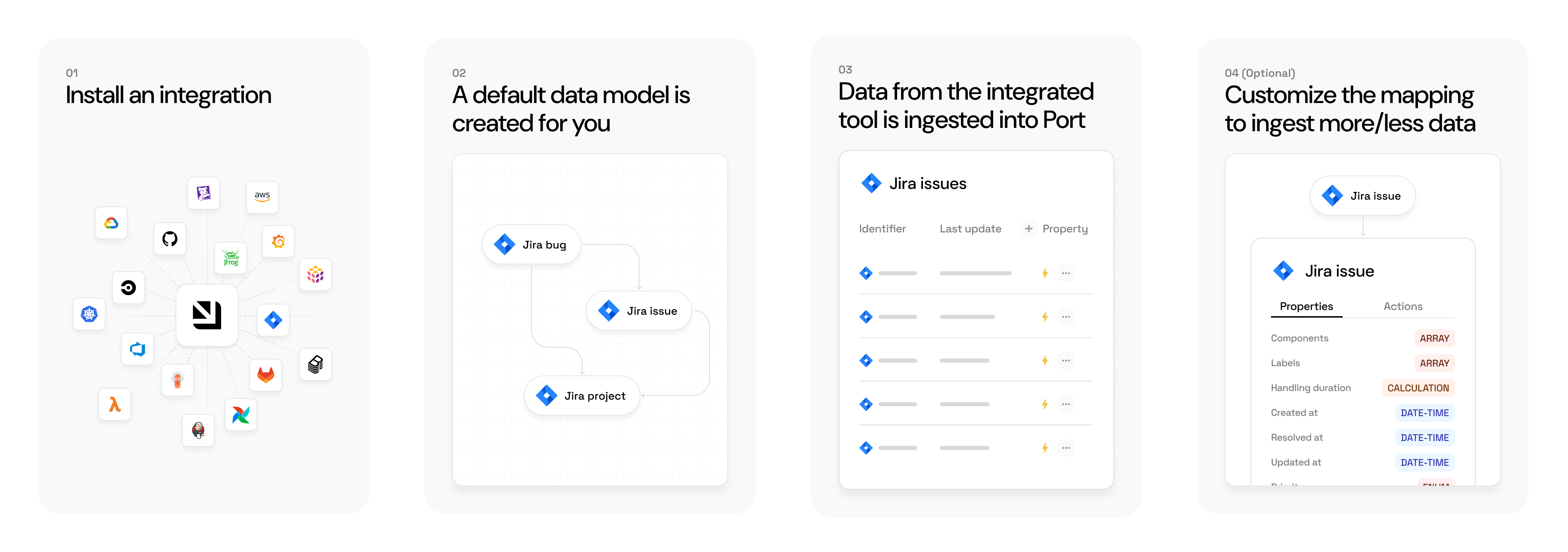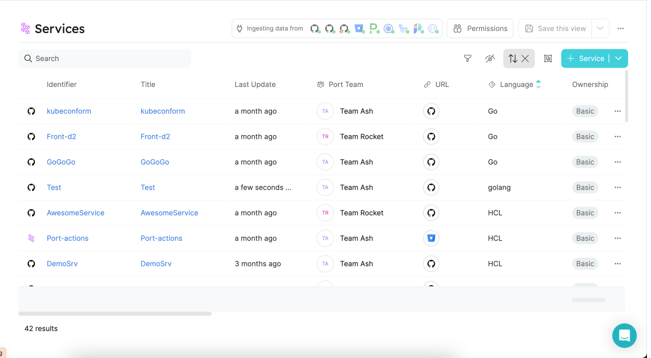 Port comes with a wide variety of available integrations for popular tools and platforms, modeled and configured by us to provide you with a plug & play experience.