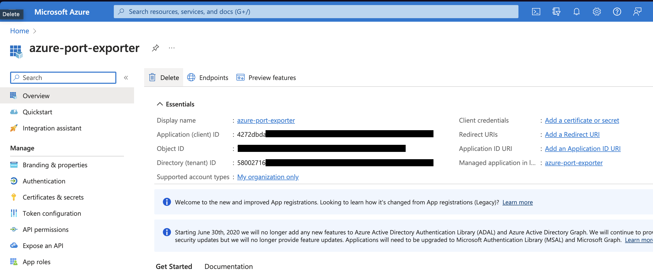 Now that you have the Azure App Registration details, you can install the Azure exporter using Docker.