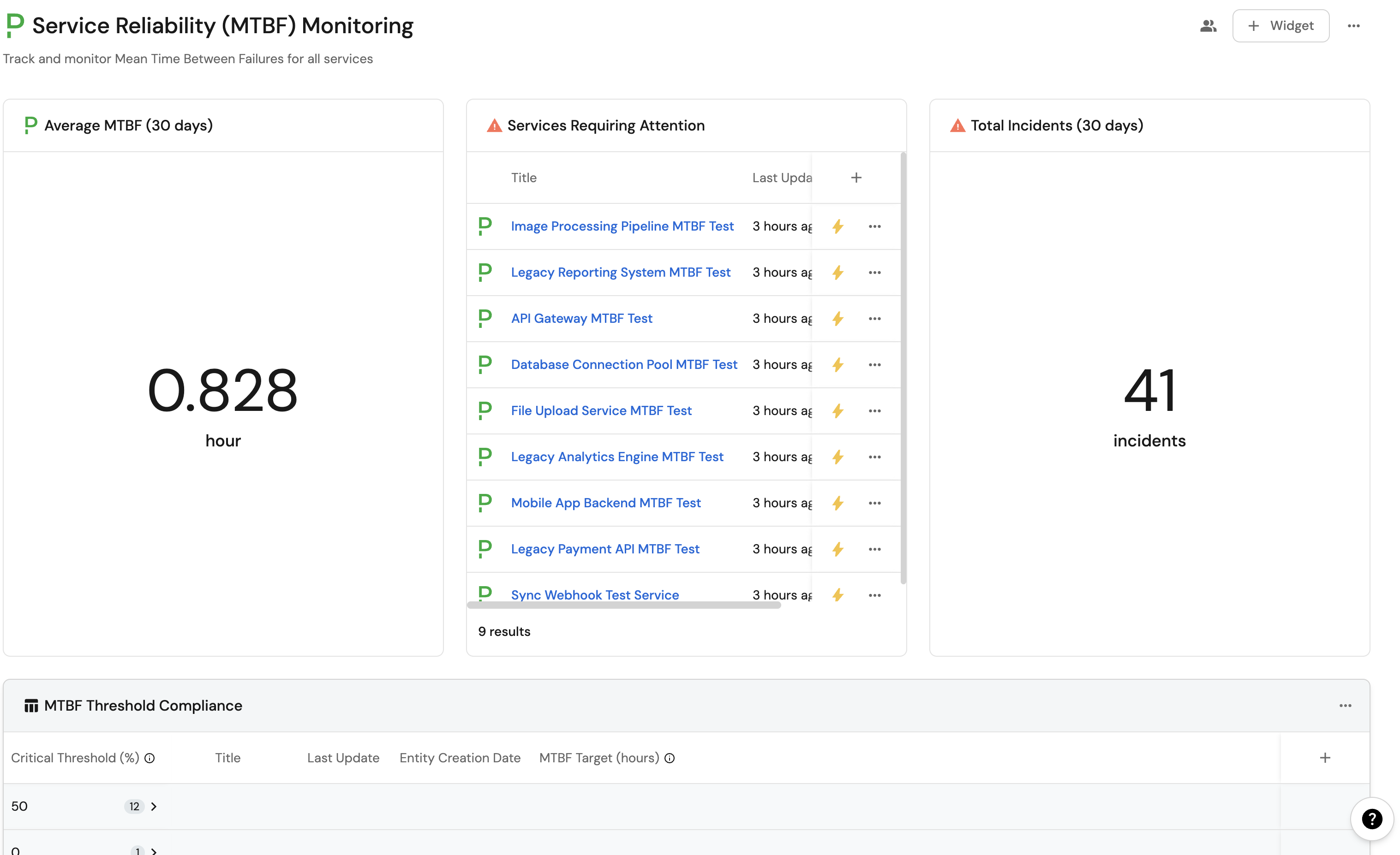 MTBF threshold compliance widget (click to expand)