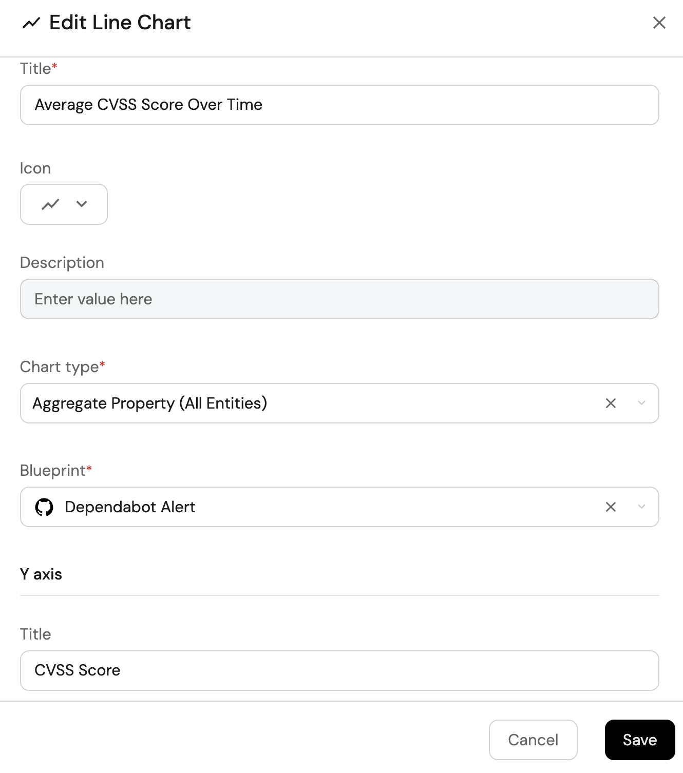 2. Title: Average CVSS Score Over Time, (add the LineChart icon).
